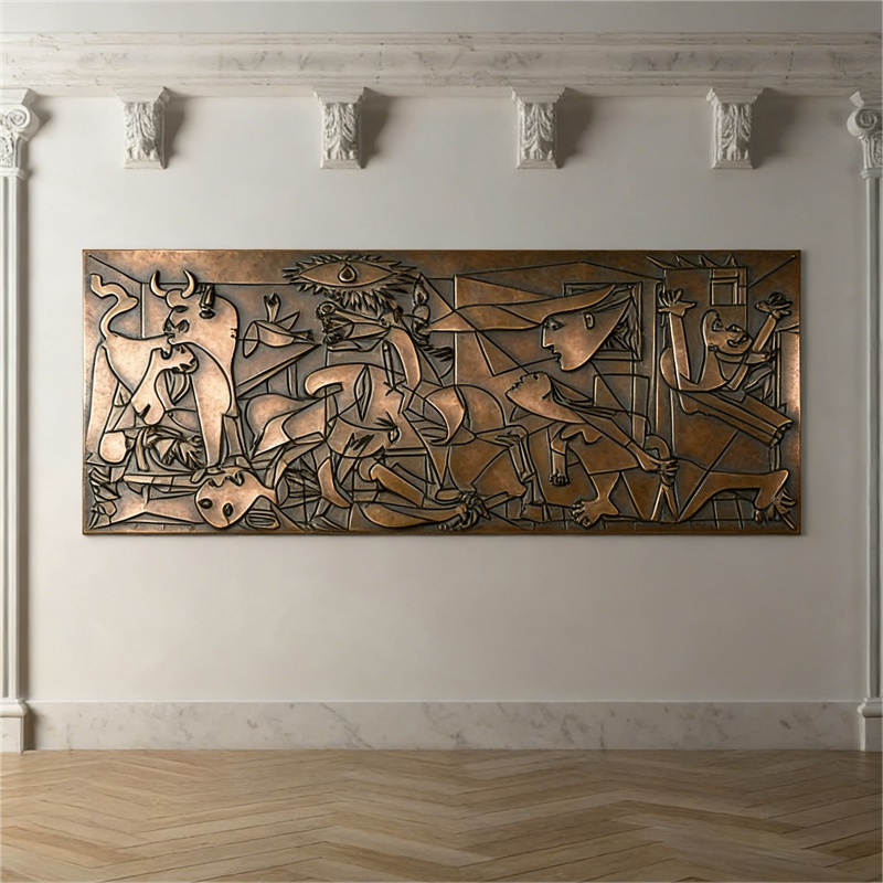 If you are decorating a hallway or another long wall, a wide horizontal sculpture can be a better choice. For example, our factory also creates a metal wall sculpture inspired by Pablo Picasso’s Guernica, combining Expressionist and Cubist influences in a bold and visually powerful composition. It is a meaningful design for those who appreciate artwork with emotional depth and timeless artistic value.