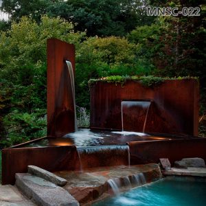 Corten steel has strong shape shaping ability, and its rusty red color will change over time. Its color changes greatly due to the influence of environment and climate. It will easily change from bright reddish brown to dark reddish brown after being left for a long time. In landscape design, giving full play to the characteristics of water can not only bring psychological and physical pleasure to people, but also give the landscape aura. Therefore, the corten steel fountains are often called the “soul of the garden.” This corten steel fountain is suitable for gardens, courtyards, lawns, hotels, villas, communities and other places.