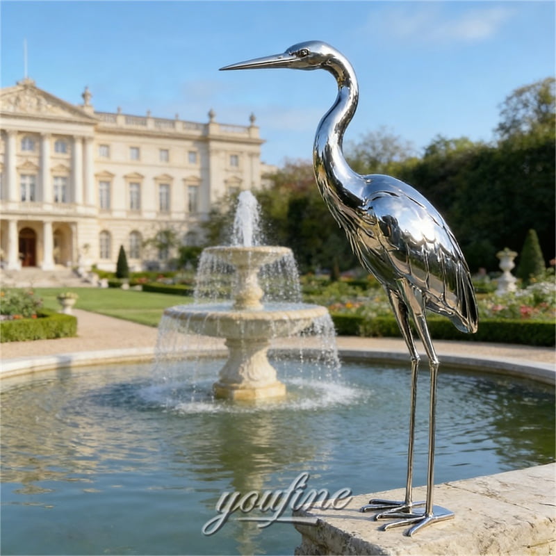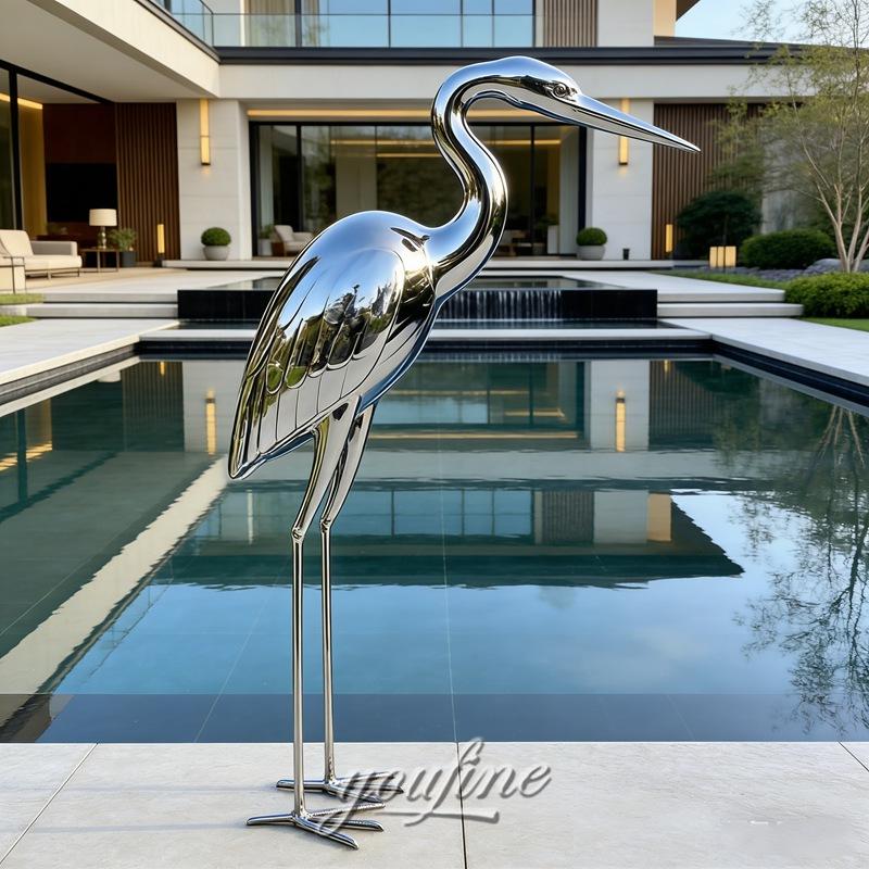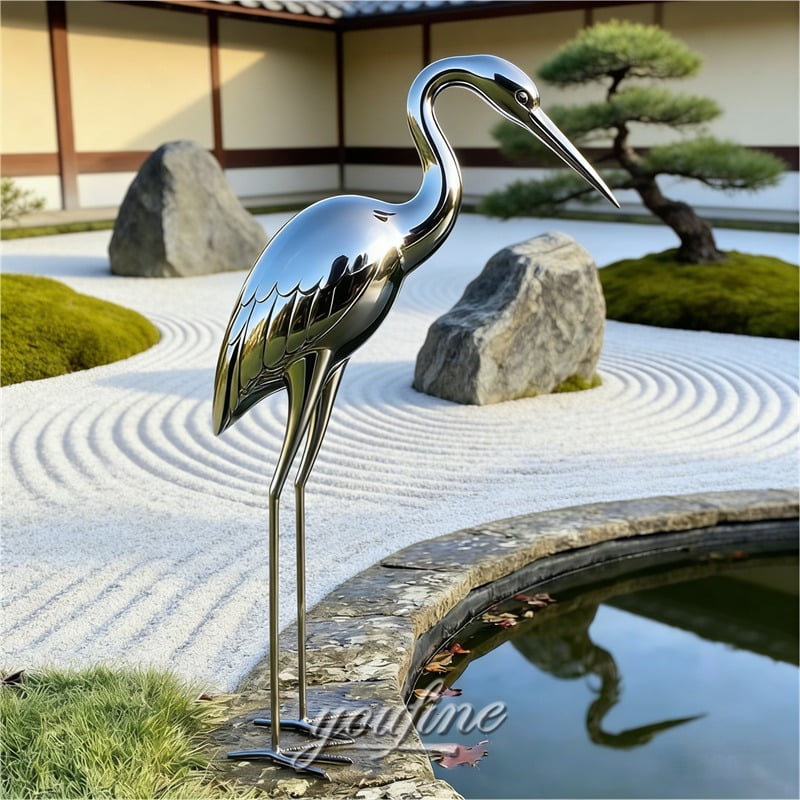 More than a decorative object, the stainless steel heron sculpture also carries rich symbolic meaning. In Eastern culture, the heron is often associated with elegance, purity, peace, longevity, and harmony with nature.