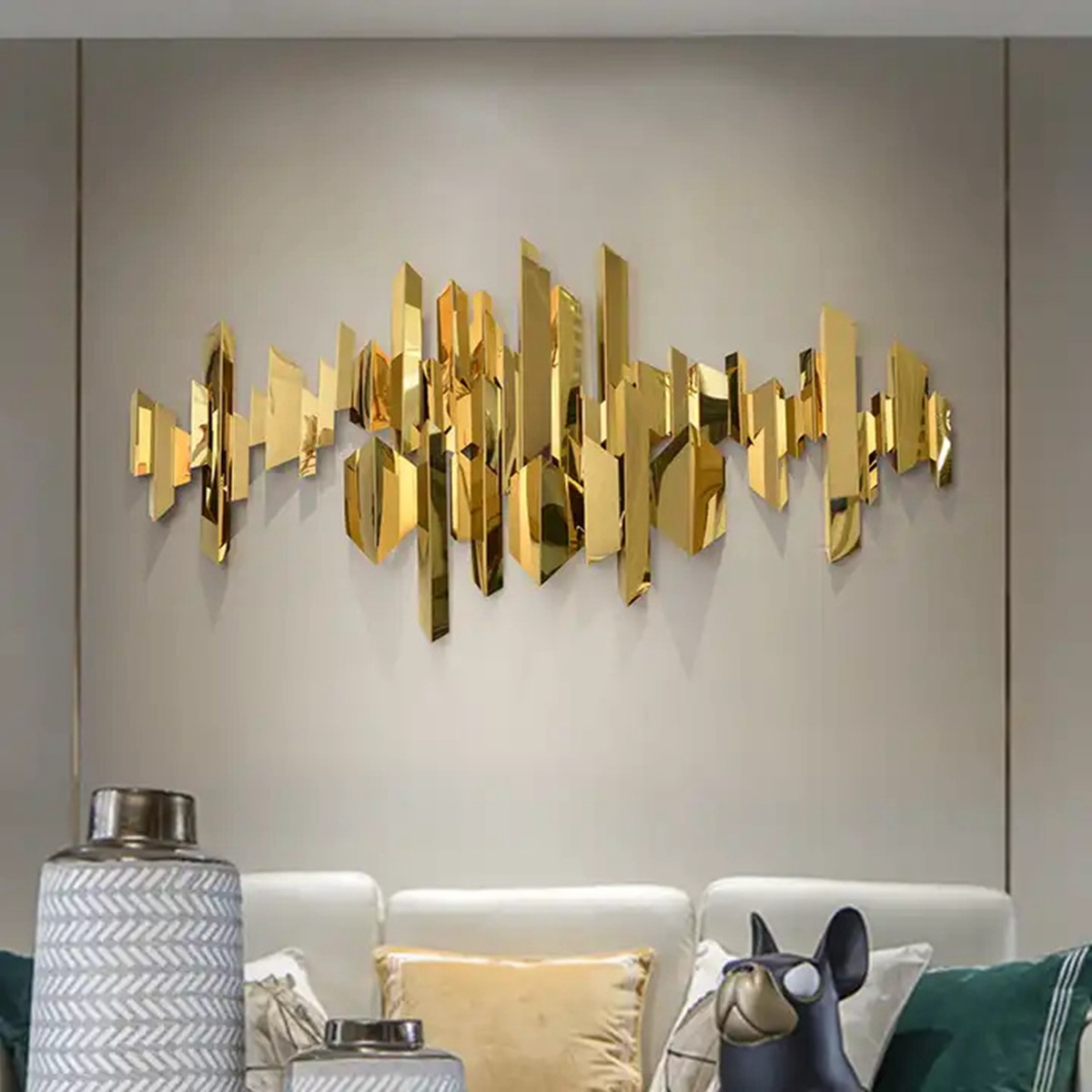 Modern metal wall sculpture has become a popular choice for people’s interior decoration. Adding a beautiful metal sculpture to a monotonous wall will directly change the atmosphere of the entire space, providing you with an enjoyable artistic atmosphere. This metal wall sculpture is composed of a number of metal tubes, with a geometric look and feel, and the random length is just right. It is suitable for hanging in living rooms, bedrooms, entrance halls, study rooms, hotels and other places.