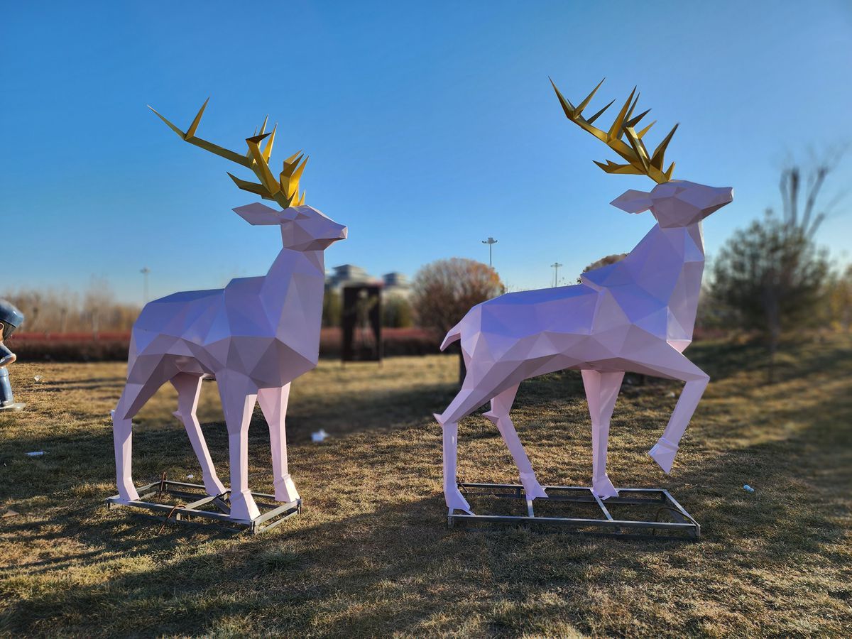 This geometric deer sculpture has beautiful colors and vivid shapes, suitable for placing in many scenes, and could coexist harmoniously with space. Gardens, lawns, squares, parks, courtyards, etc. are all good choices for placement, injecting vitality into the space while also attracting many people to appreciate.
