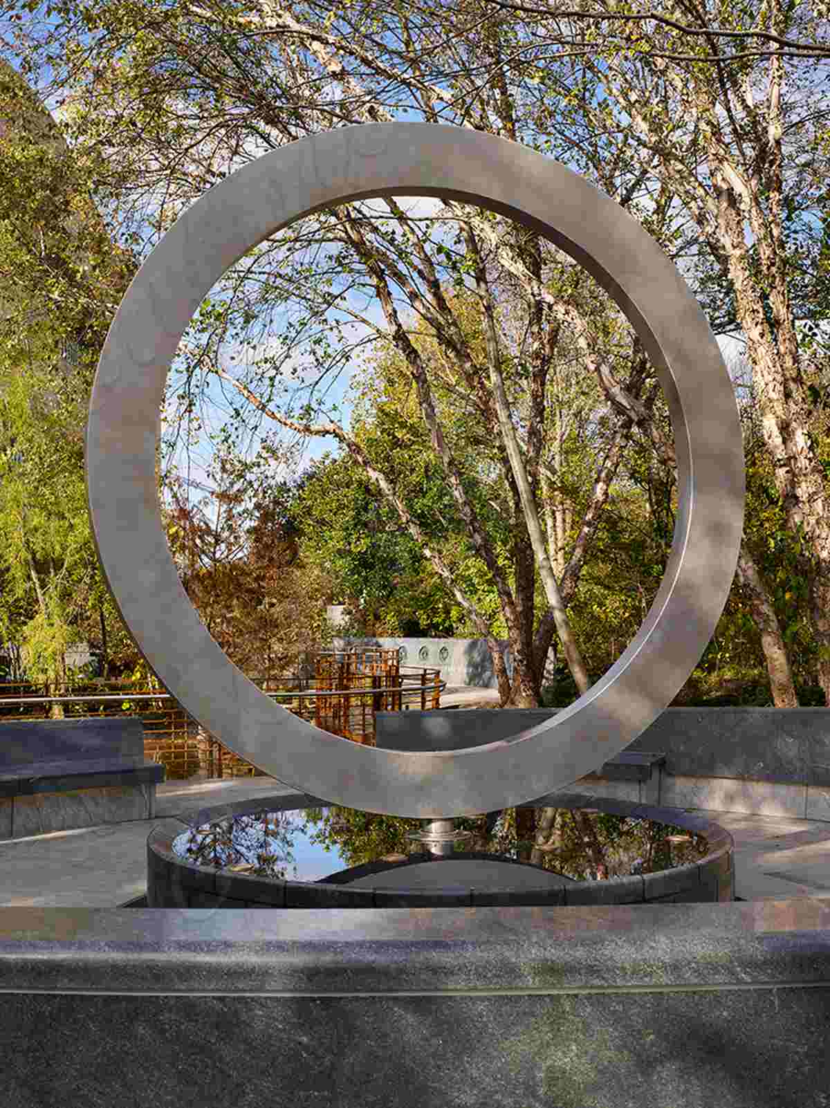 Metal circle water fountain supports any design scheme, if you are interested in buying our fountain sculpture, please feel free to contact You Fine for more details.