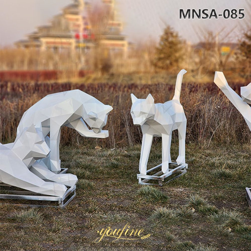 Take a look at these stunning large metal cat sculptures! Each cat is meticulously crafted with smooth, angular lines, showcasing a modern, minimalist design.